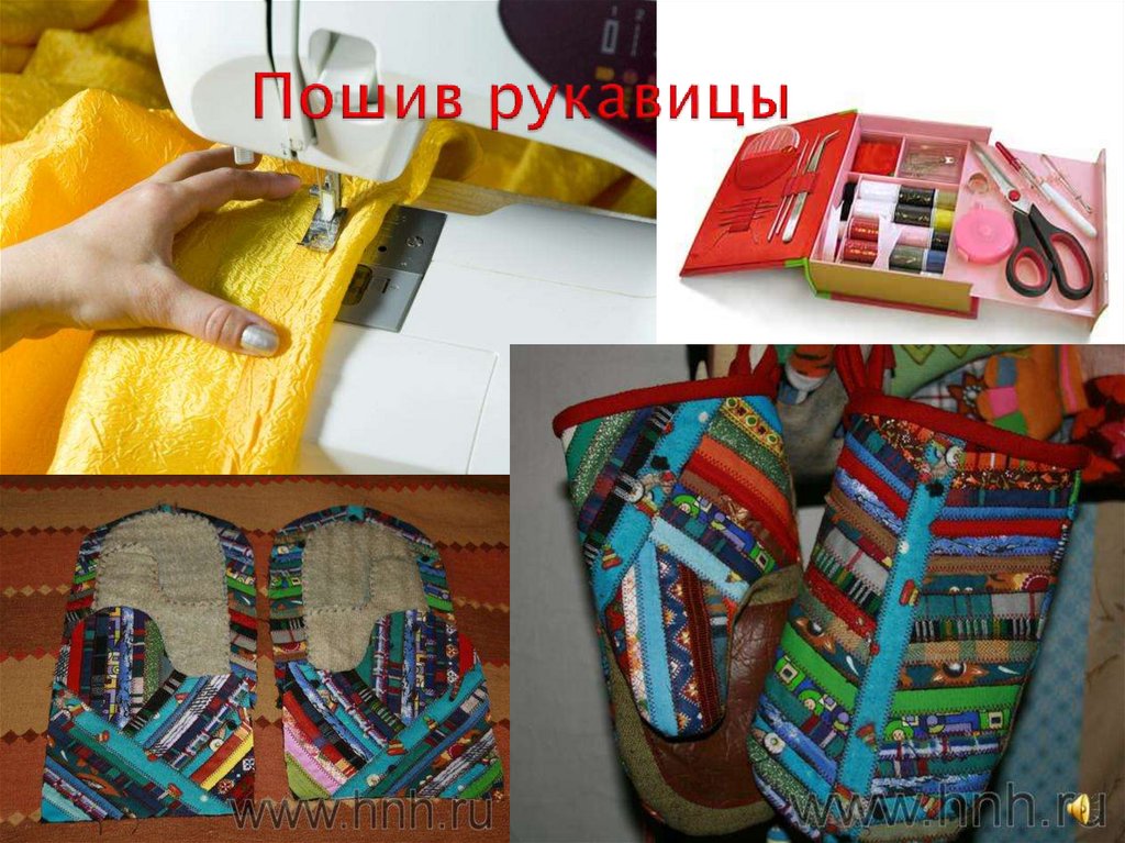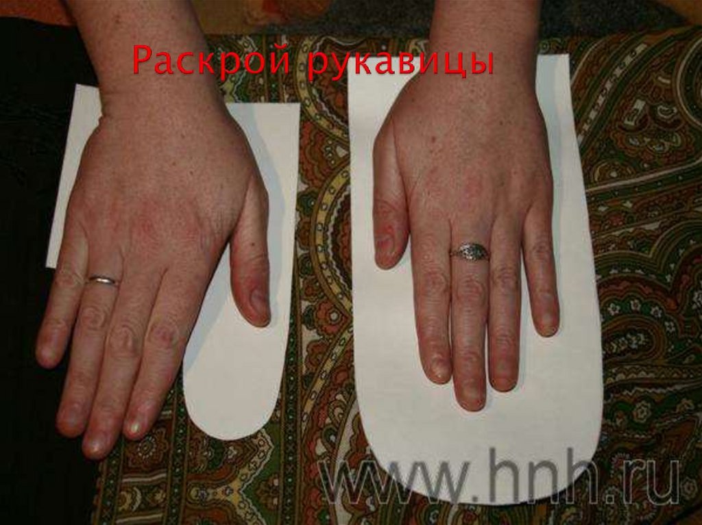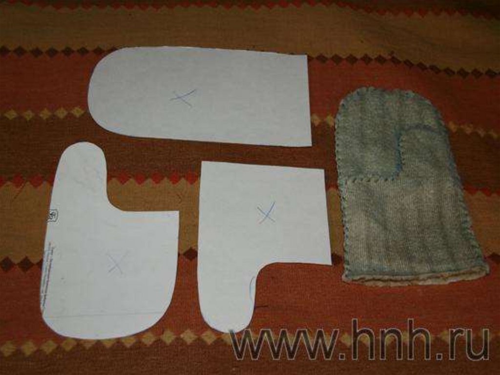 Раскрой и пошив рукавицы.