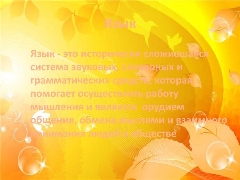 Язык• Язык - это исторически сложившаяся