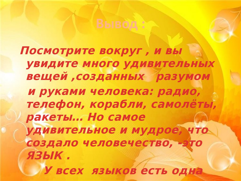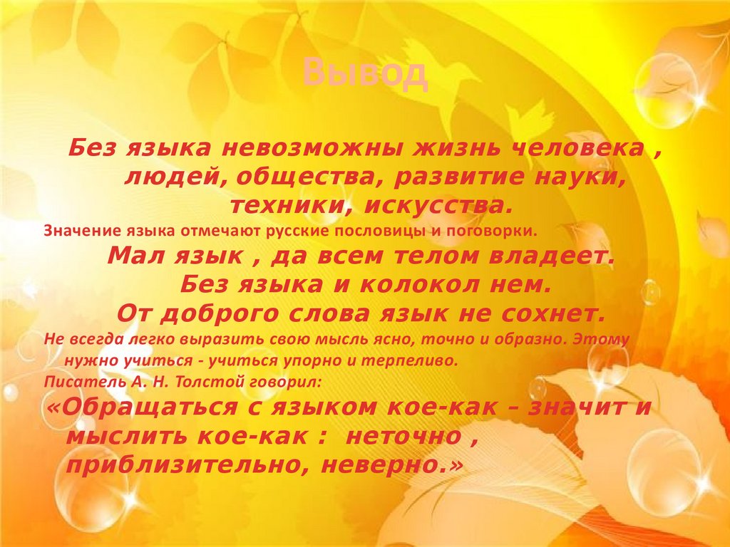 ВыводБез языка невозможны жизнь человека ,