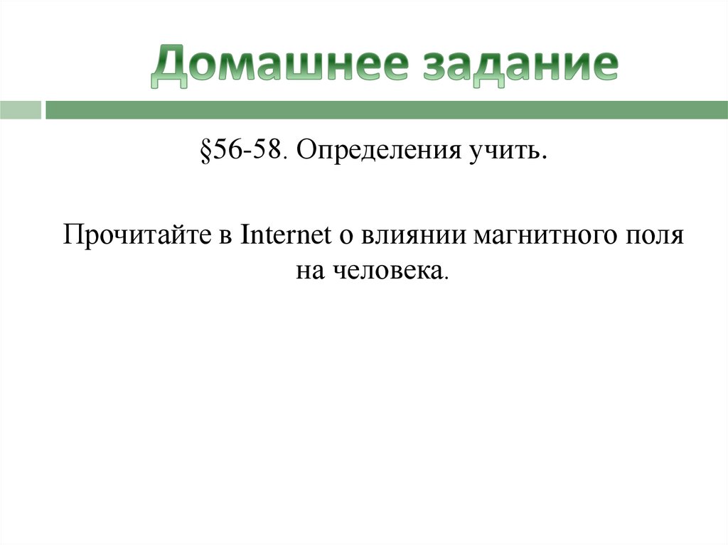 §56-58. Определения учить.Прочитайте в Internet о влиянии магнитного поля