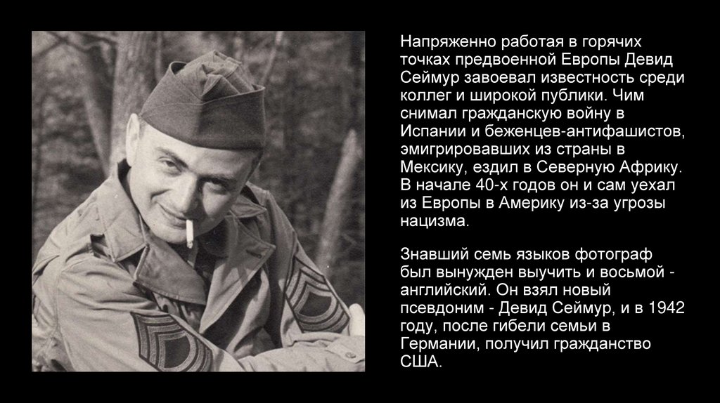 псевдоним - Девид Сеймур, и в 1942