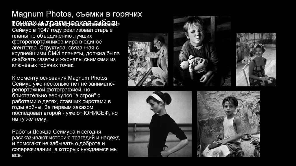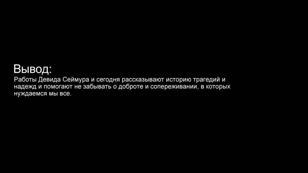 Вывод:Работы Девида Сеймура и сегодня рассказывают историю трагедий и