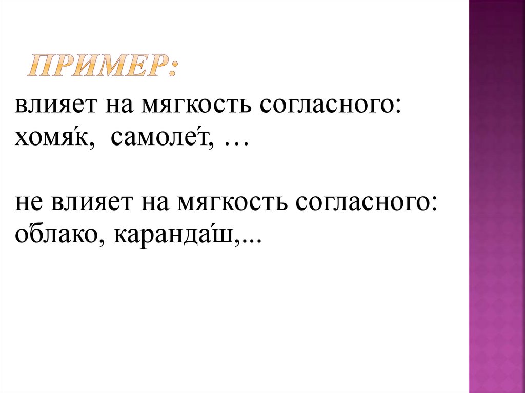 влияет на мягкость согласного:хомя́к, самоле́т, …