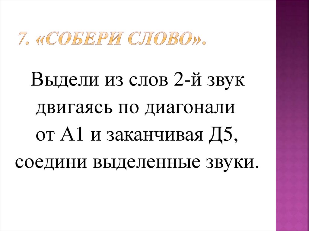 Выдели из слов 2-й звукдвигаясь по диагонали
