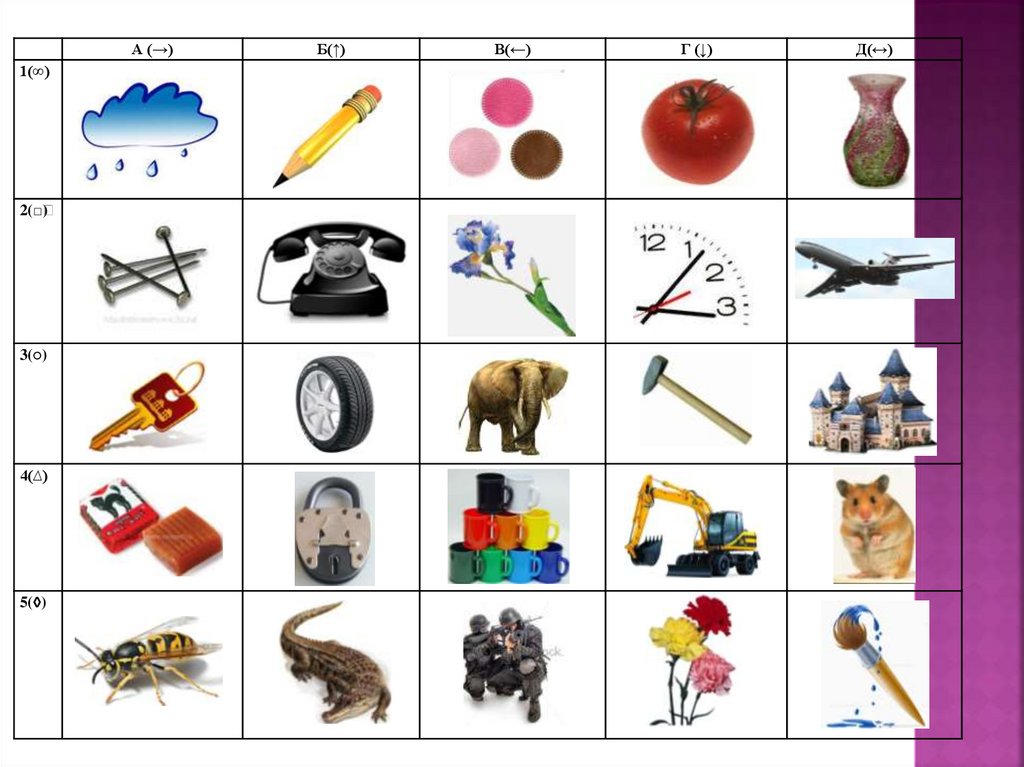 Рассмотри картинки по горизонтали(по вертикали) в ряду 1(2-5),