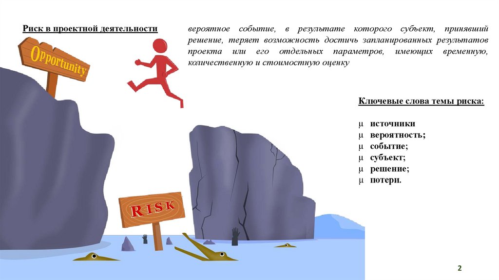Риск в проектной деятельностивероятное событие, в результате которого субъект, принявший