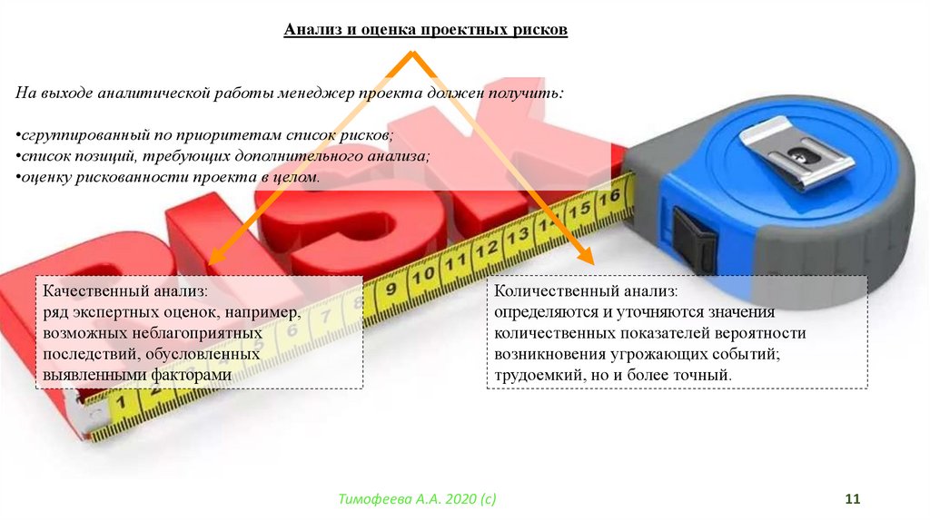 Анализ и оценка проектных рисковНа выходе аналитической работы менеджер проекта должен получить: