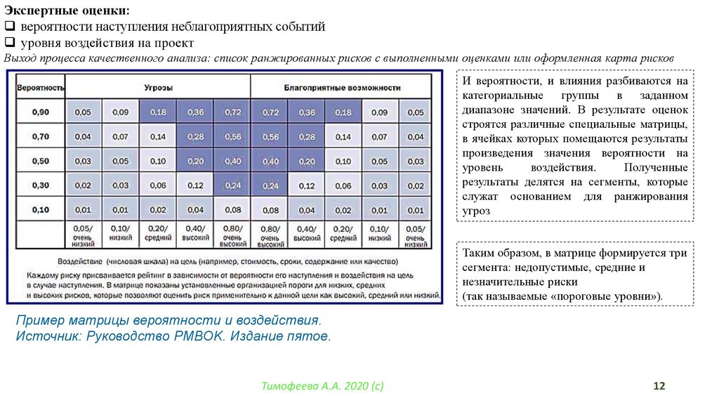 Экспертные оценки:вероятности наступления неблагоприятных событий