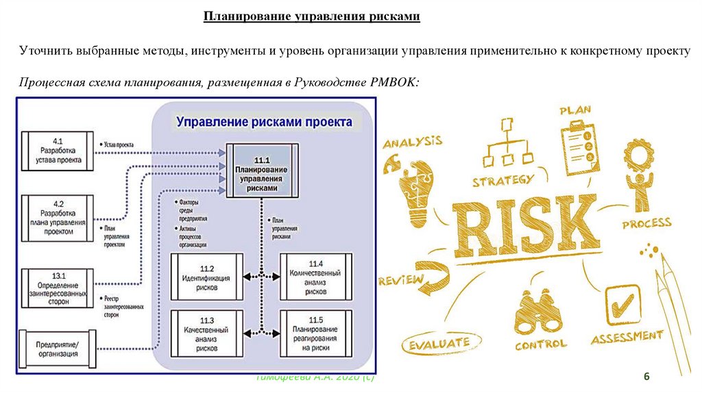 Планирование управления рискамиУточнить выбранные методы, инструменты и уровень организации управления применительно к конкретному проекту