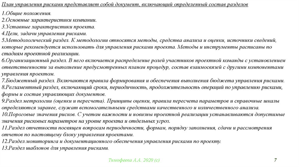 План управления рисками представляет собой документ, включающий определенный состав разделов1.Общие положения.