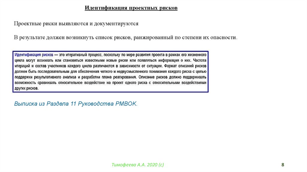 Элементы концепции управления проектными рискамиИдентификация - определение рисков на основе