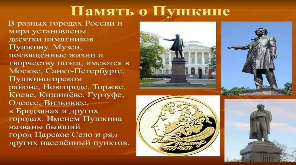 Увековечение имени А.С. Пушкина в названиях городов, улиц, площадей, скверов