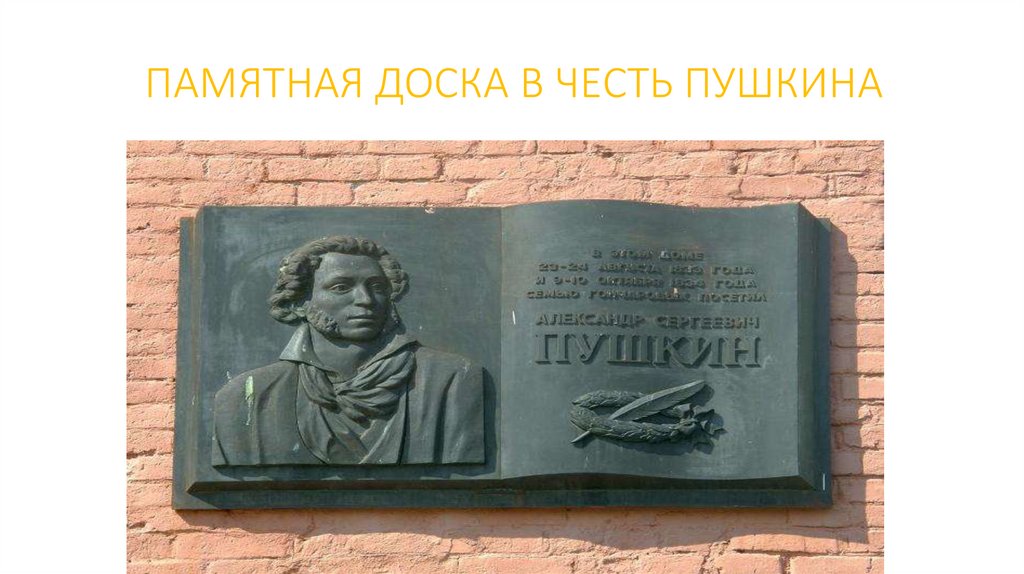 ПАМЯТНАЯ ДОСКА В ЧЕСТЬ ПУШКИНА