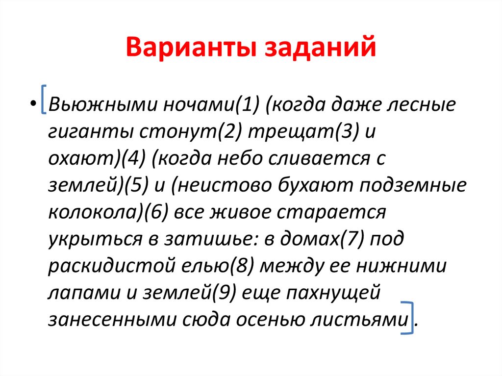 Варианты заданий• Вьюжными ночами(1) (когда даже лесные