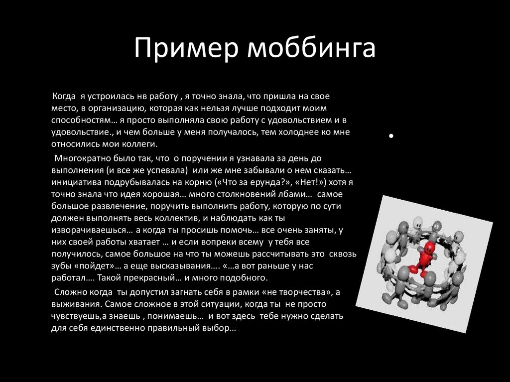 Пример моббингаКогда я устроилась нв работу , я точно знала, что пришла на свое