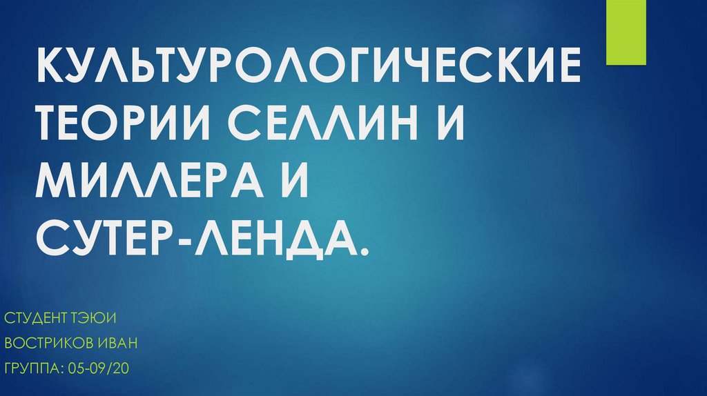 Культурологические теории селлин и миллера и сутер-ленда