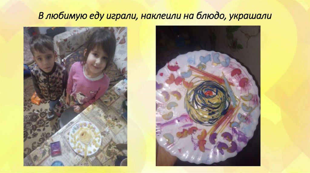 В любимую еду играли, наклеили на блюдо, украшали8.