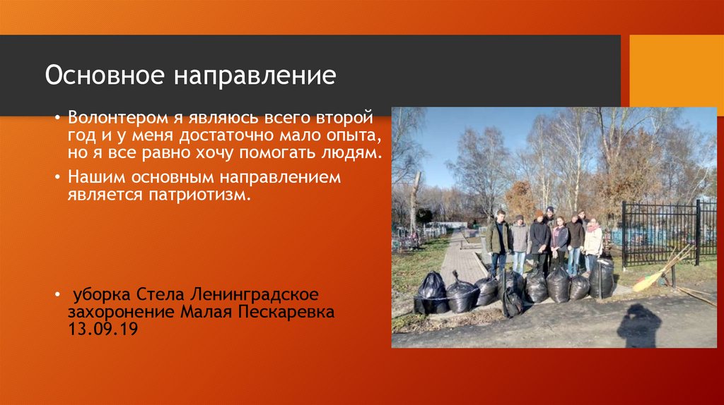 Основное направление• Волонтером я являюсь всего второй
