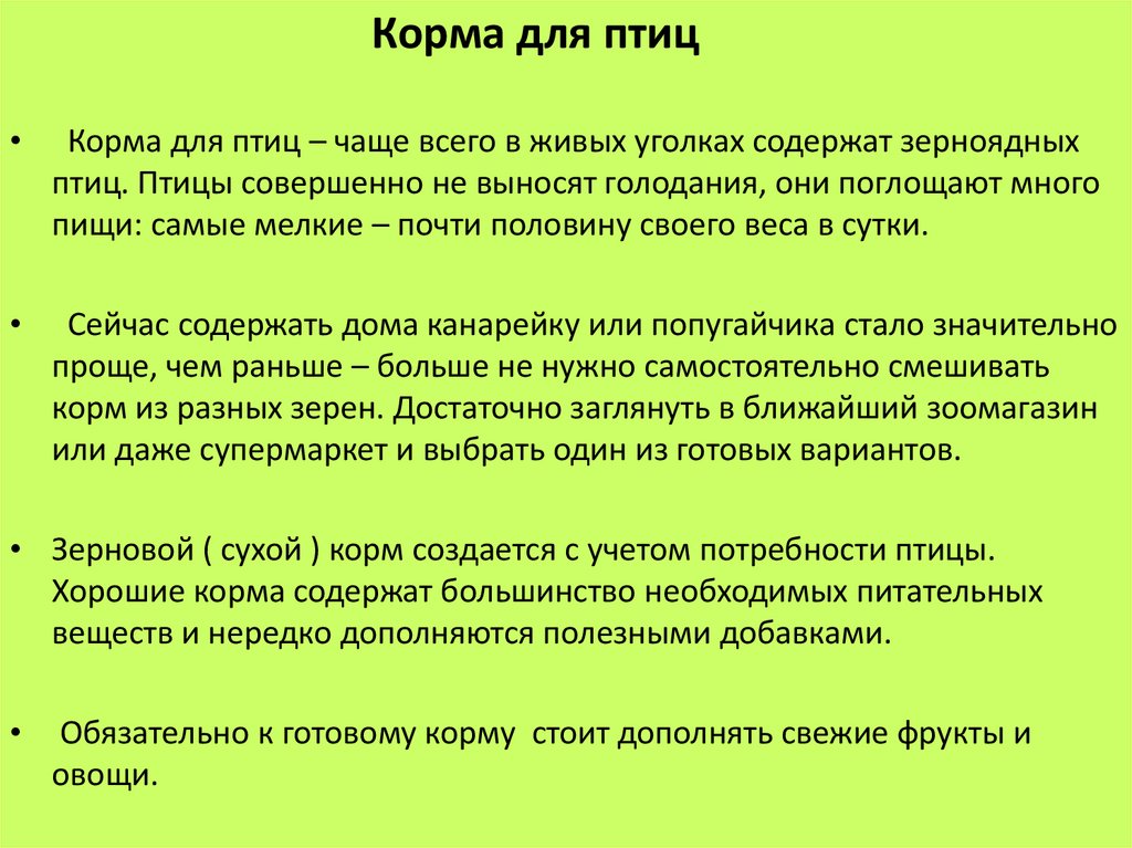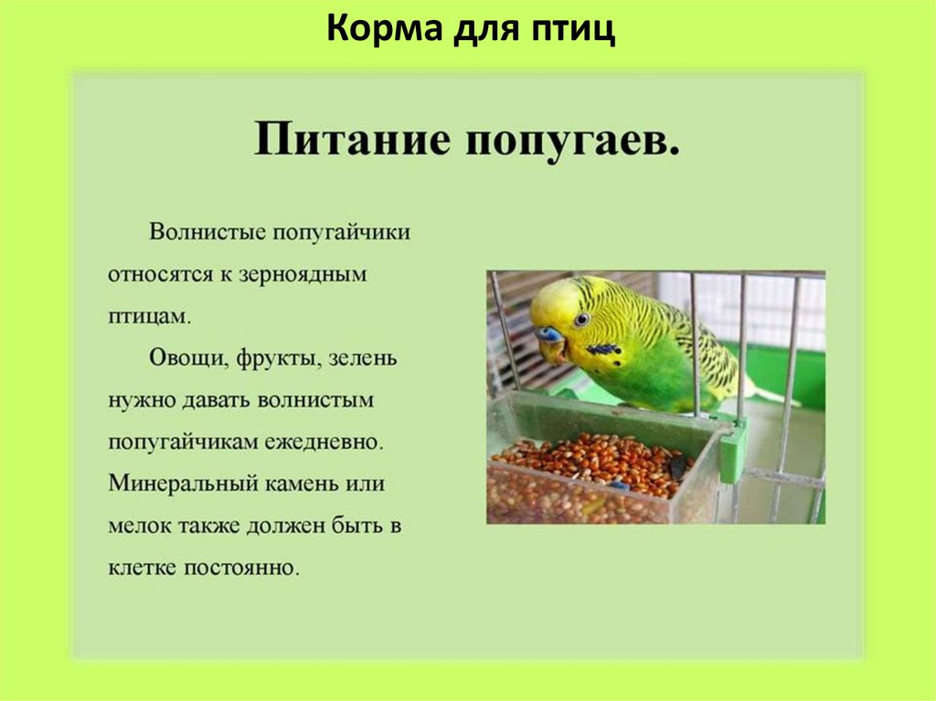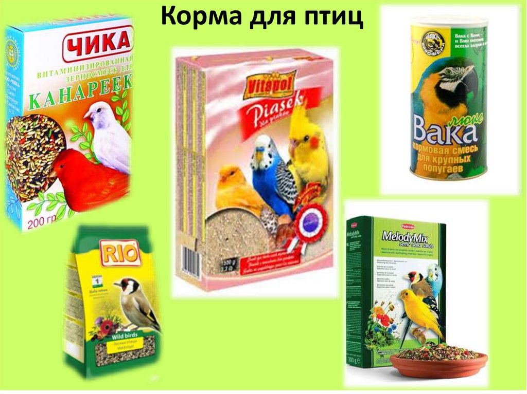 Корма для птицКорма для птиц – чаще всего в живых уголках содержат зерноядных