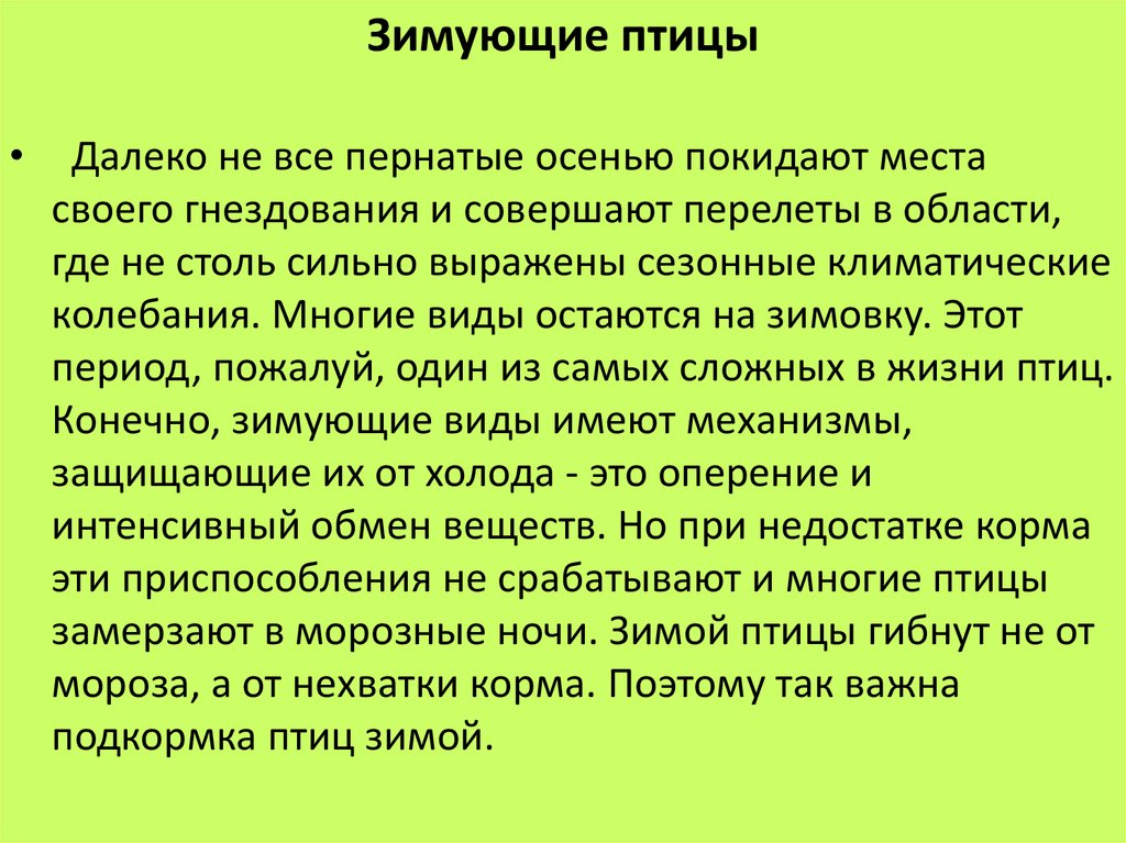 Зимующие птицыДалеко не все пернатые осенью покидают места