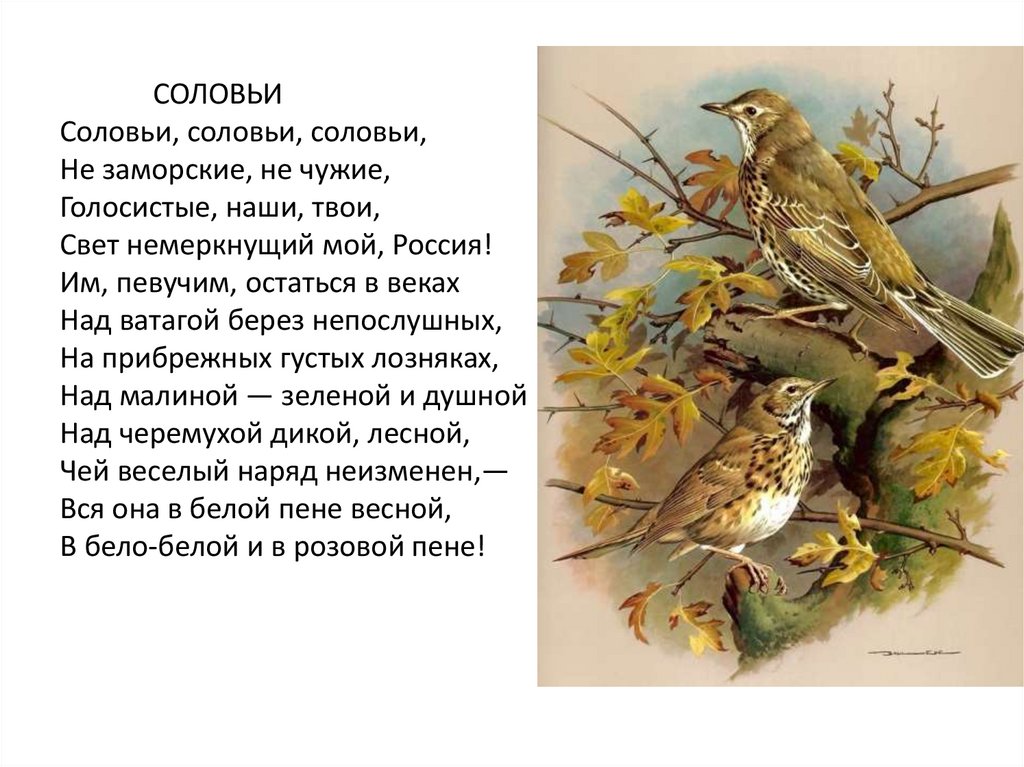 СОЛОВЬИСоловьи, соловьи, соловьи,