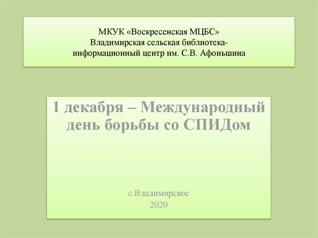 МКУК «Воскресенская МЦБС»Владимирская сельская библиотекаинформационный центр им. С.В. Афоньшина