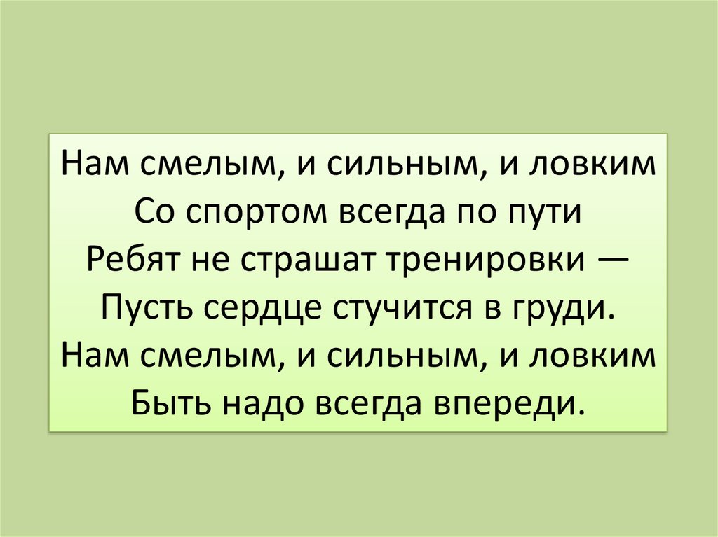 Нам смелым, и сильным, и ловкимСо спортом всегда по пути