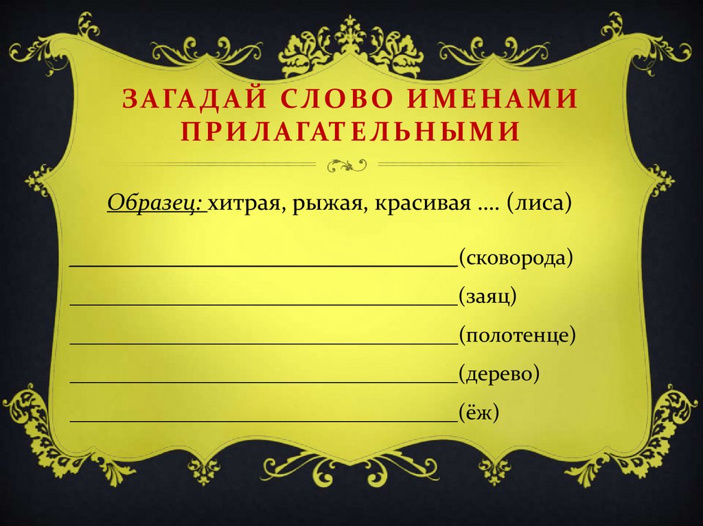 Образец: хитрая, рыжая, красивая …. (лиса)