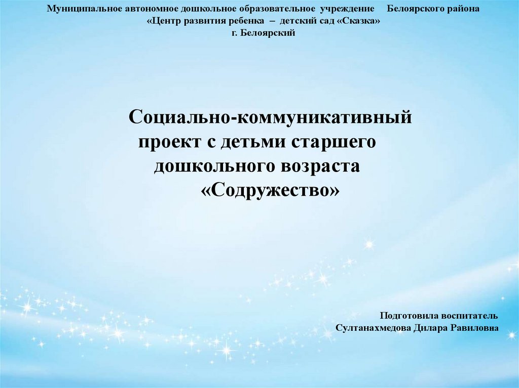 Муниципальное автономное дошкольное образовательное учреждение Белоярского района«Центр развития ребенка – детский сад «Сказка»