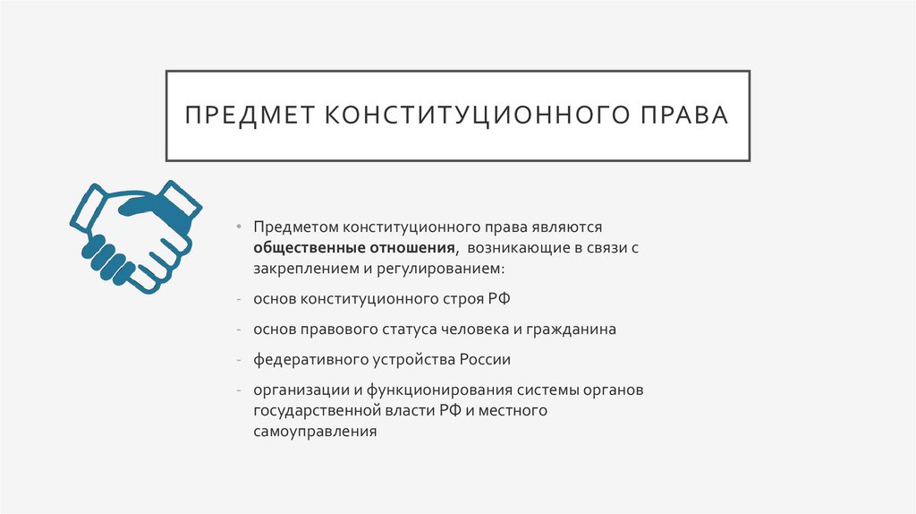 ПРЕДМЕТ КОНСТИТУЦИОННОГО ПРАВА• Предметом конституционного права являются