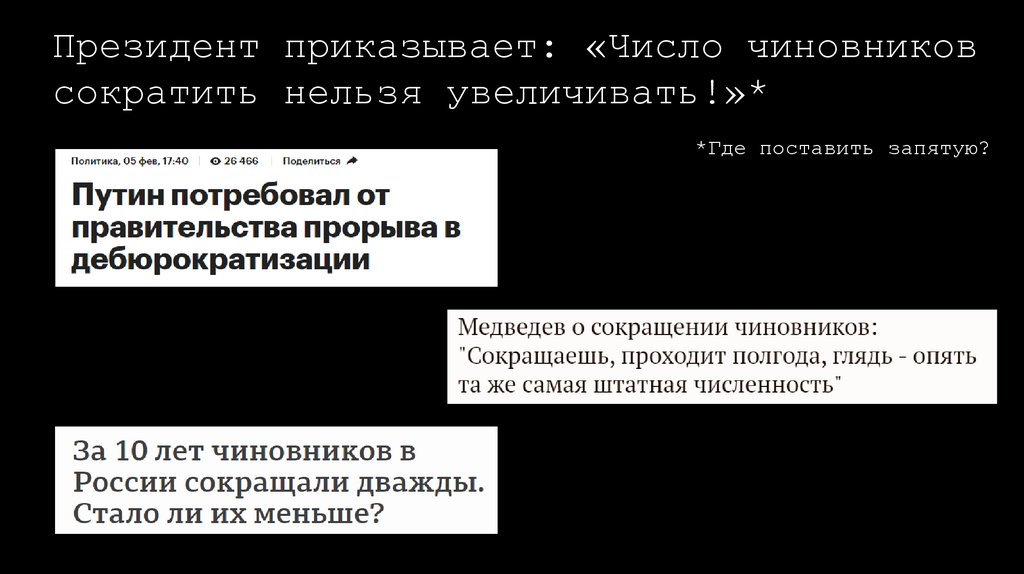 Президент приказывает: «Число чиновниковсократить нельзя увеличивать!»*