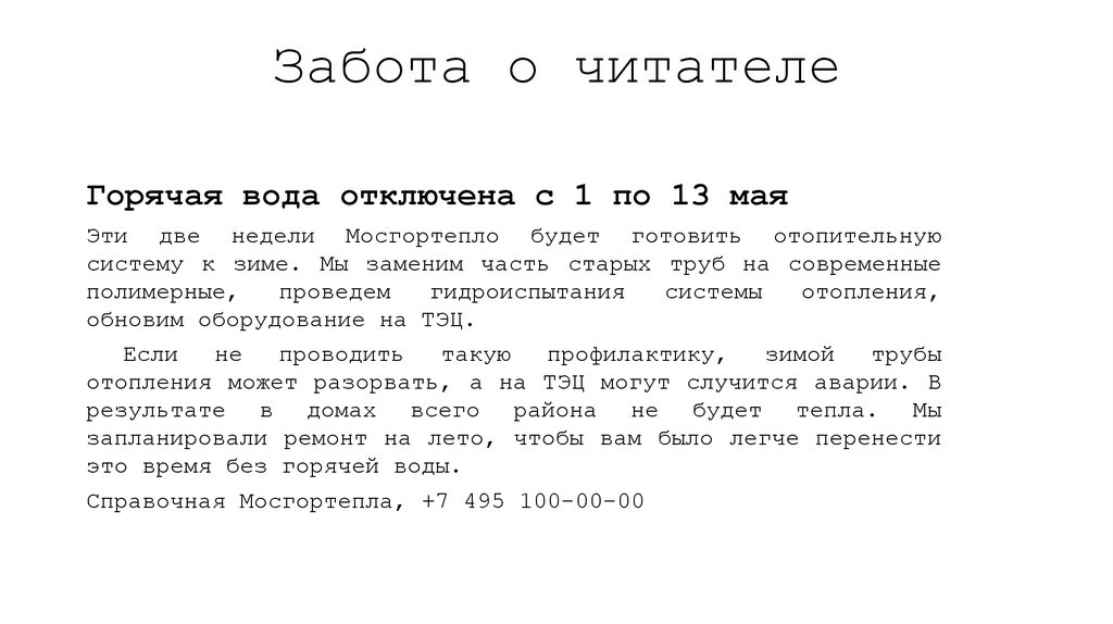 Забота о читателеГорячая вода отключена с 1 по 13 мая