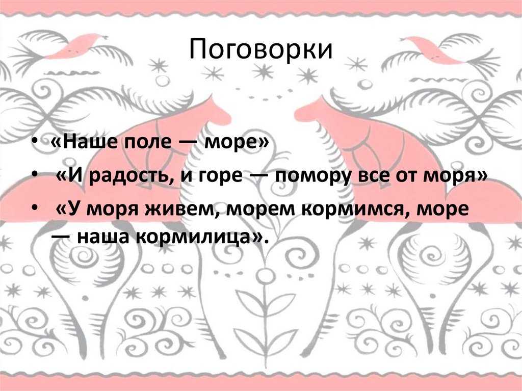 Поговорки• «Наше поле — море»