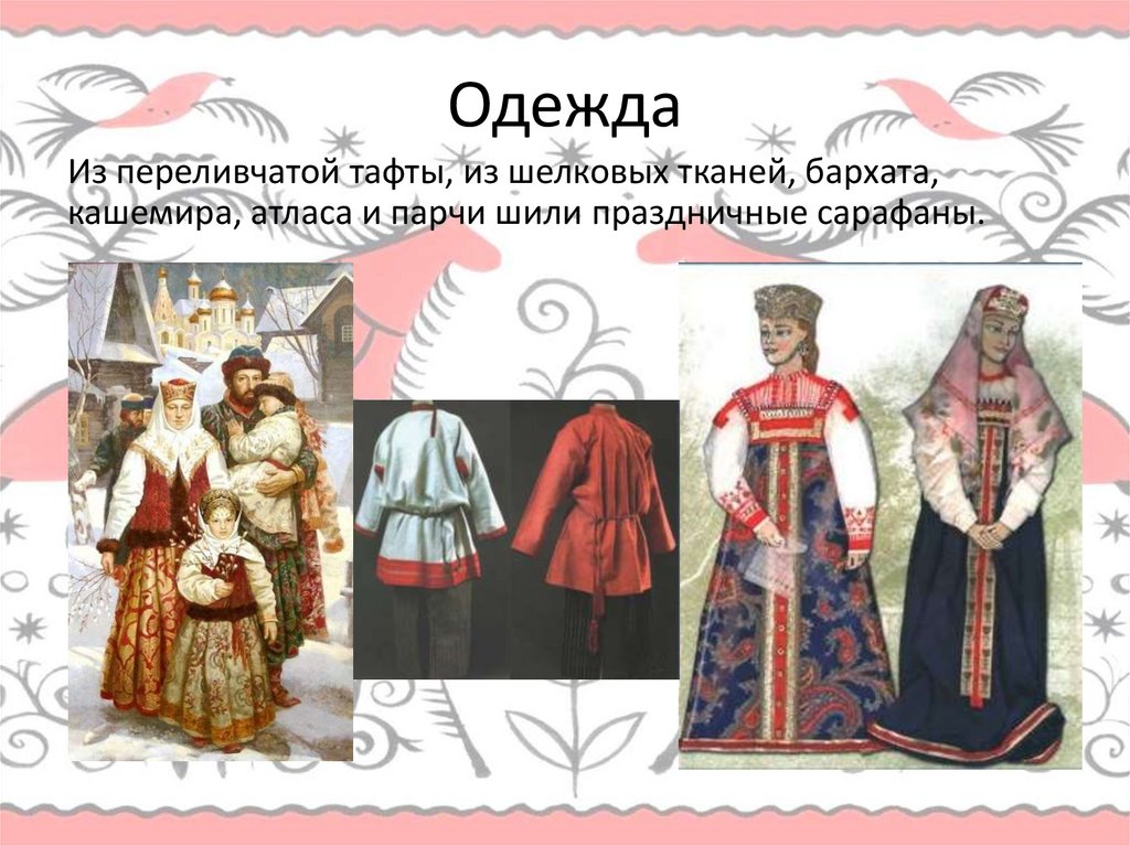 ОдеждаИз переливчатой тафты, из шелковых тканей, бархата,