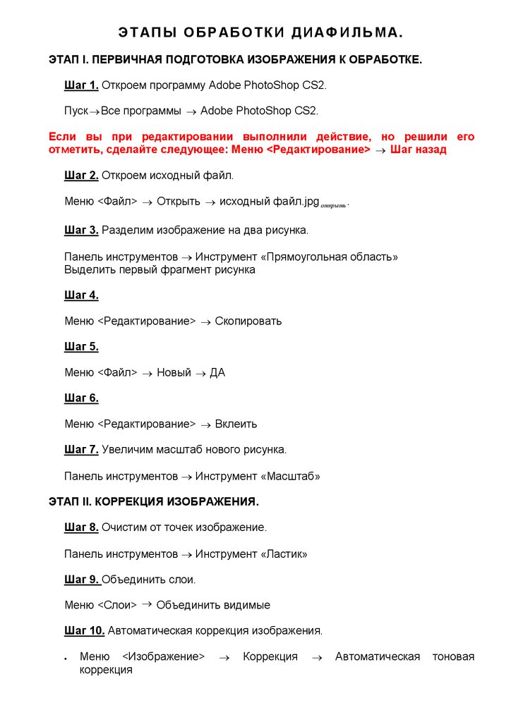 Обработка диафильма