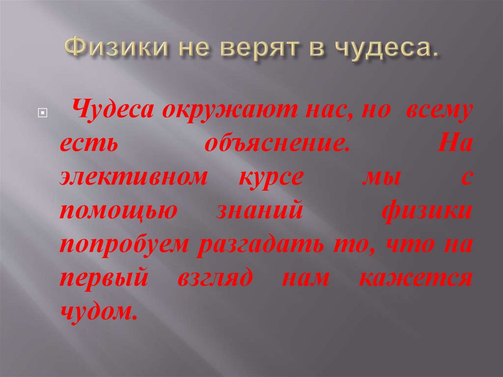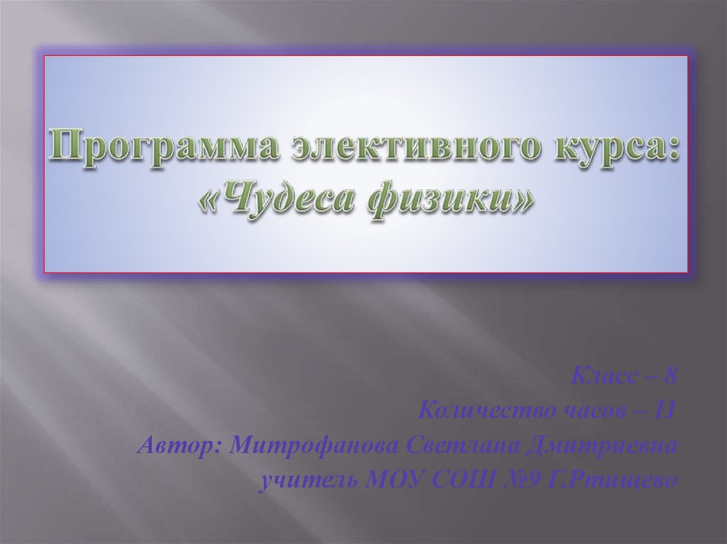 Программа элективного курса: «Чудеса физики»