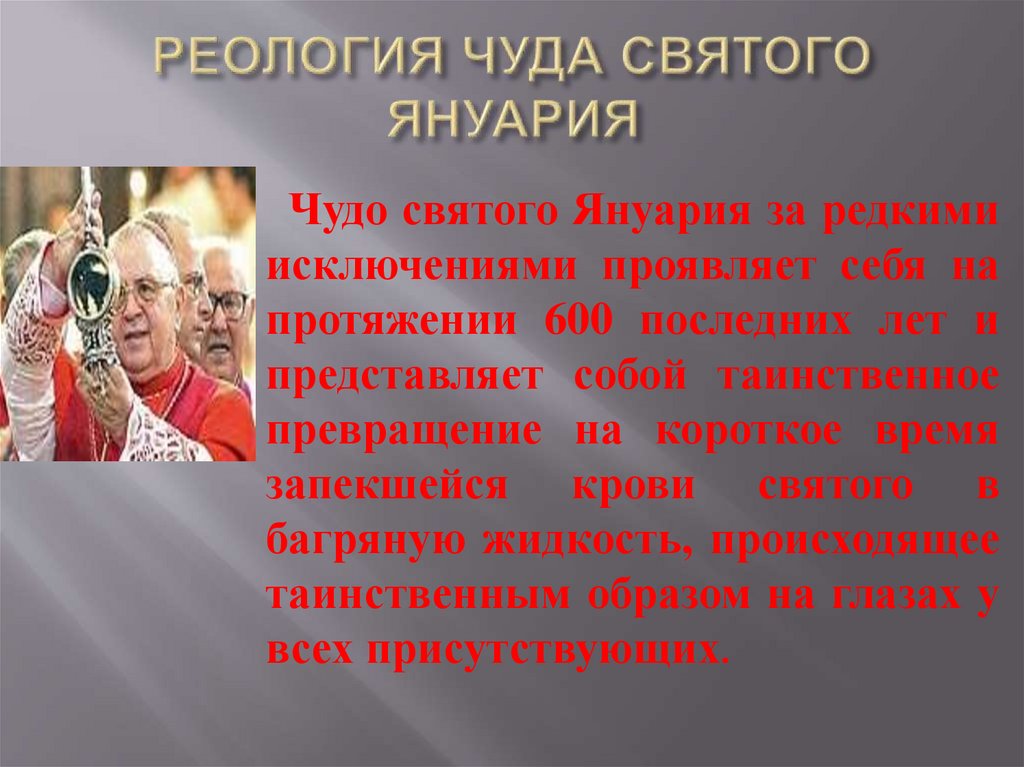 Чудо святого Януария за редкимиисключениями проявляет себя на