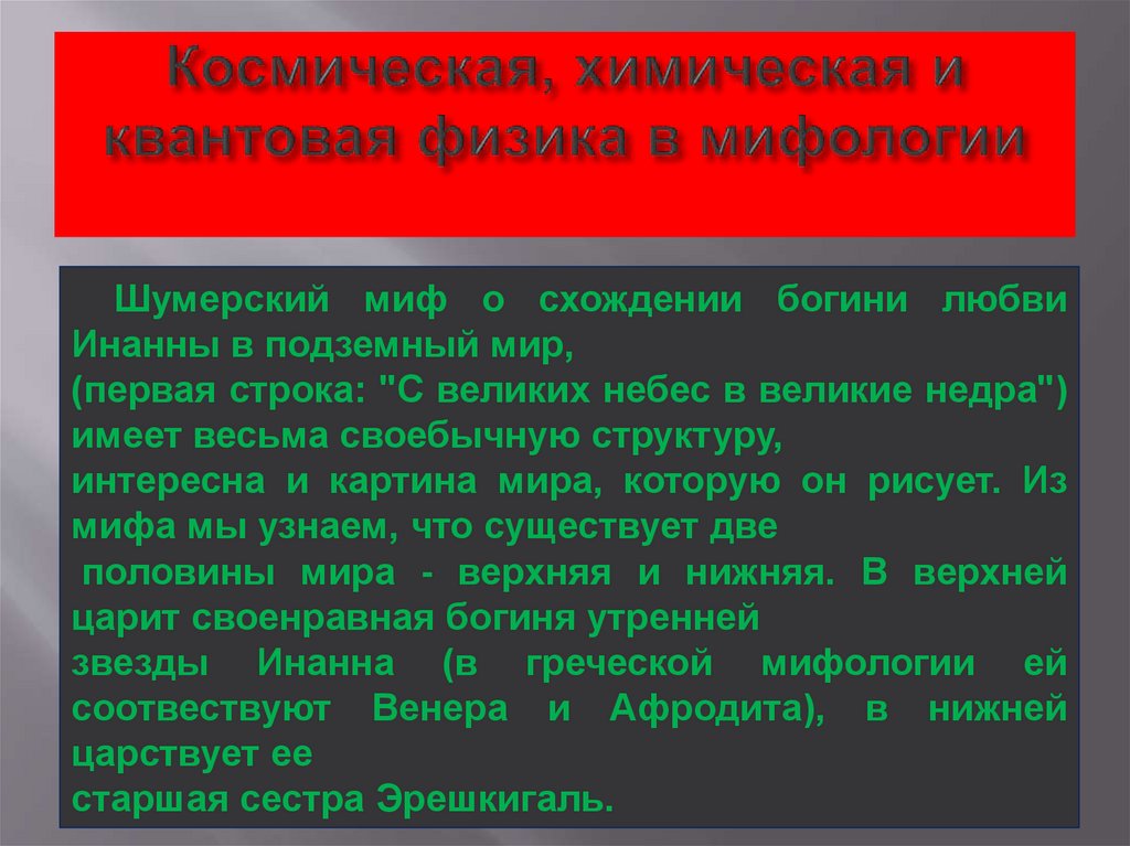 Шумерский миф о схождении богини любвиИнанны в подземный мир,