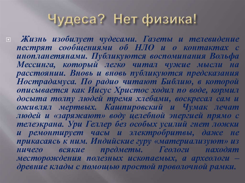 Жизнь изобилует чудесами. Газеты и телевидениепестрят сообщениями об НЛО и о контактах с