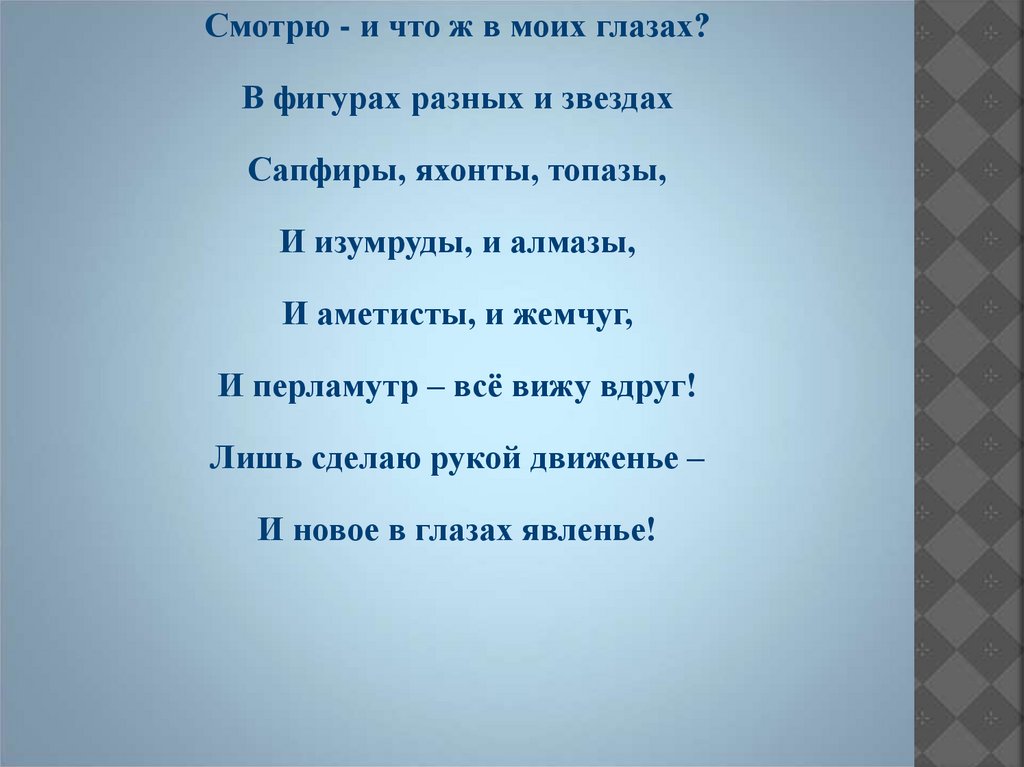 Смотрю - и что ж в моих глазах?В фигурах разных и звездах