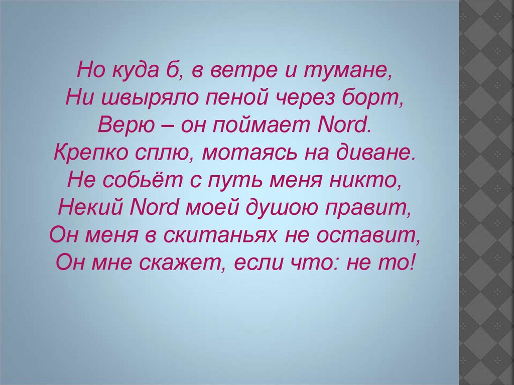 Но куда б, в ветре и тумане,Ни швыряло пеной через борт,