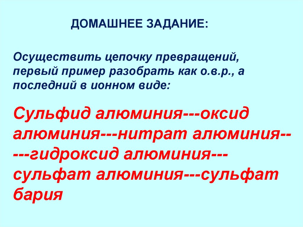 ДОМАШНЕЕ ЗАДАНИЕ:Осуществить цепочку превращений,