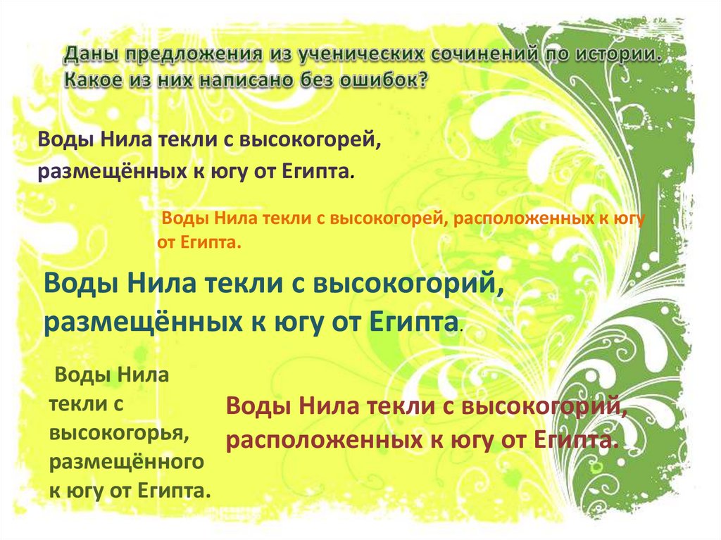 Воды Нила текли с высокогорей,размещённых к югу от Египта.
