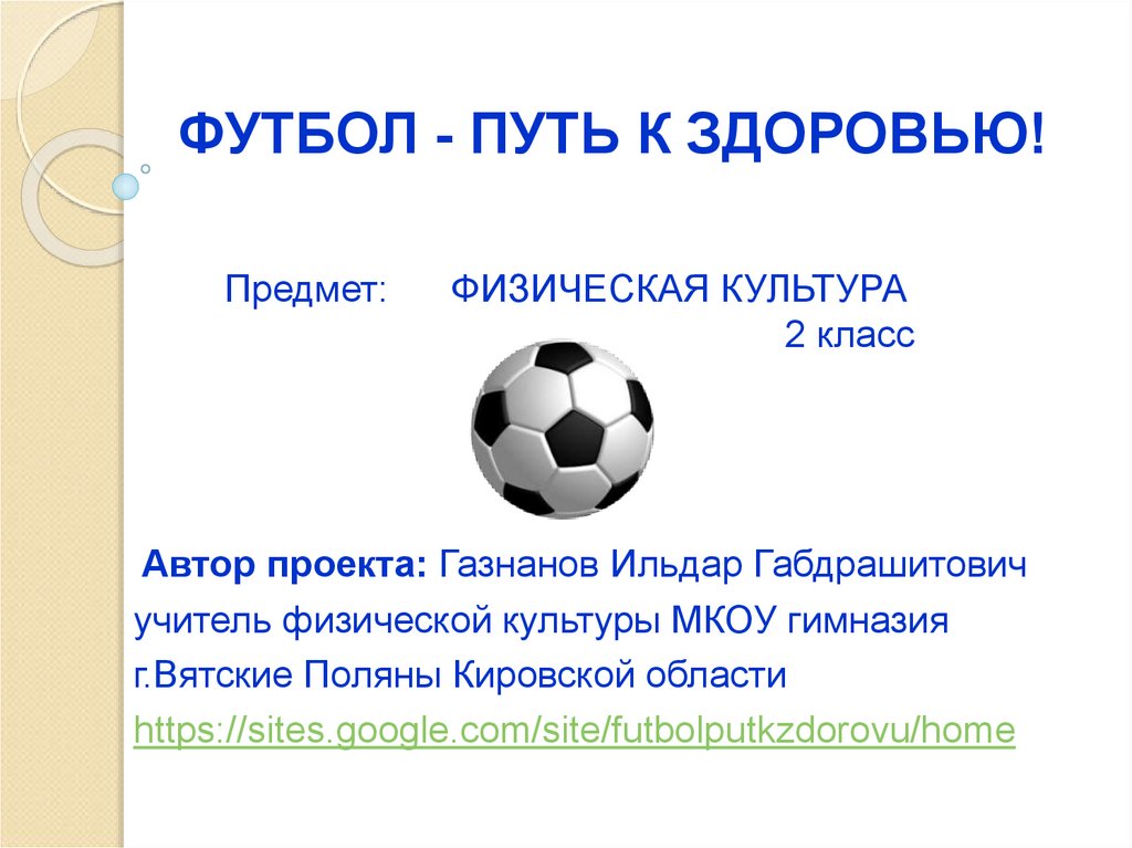 1. ФУТБОЛ - ПУТЬ К ЗДОРОВЬЮ! Предмет: ФИЗИЧЕСКАЯ КУЛЬТУРА 2 класс