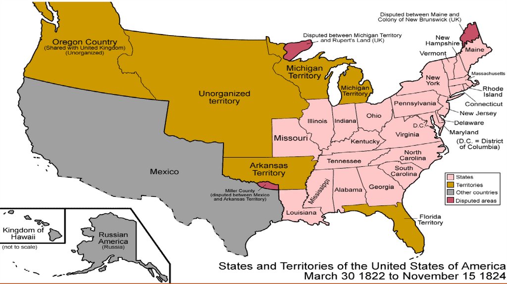 Мичиган и в 1848 — Висконсин, а на Юго-западе — Миссури (1817),