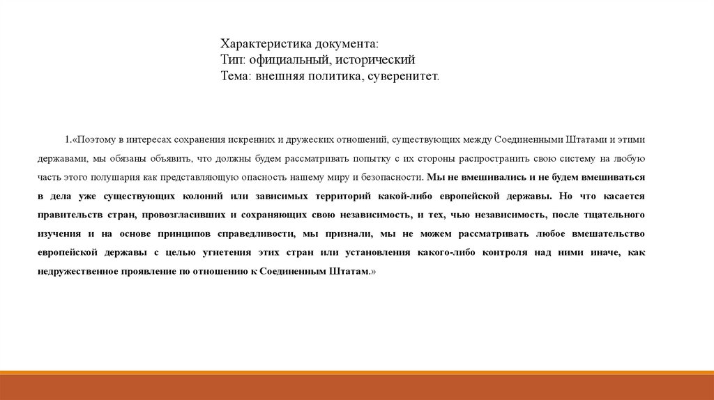 1.«Поэтому в интересах сохранения искренних и дружеских отношений, существующих между Соединенными Штатами и этими