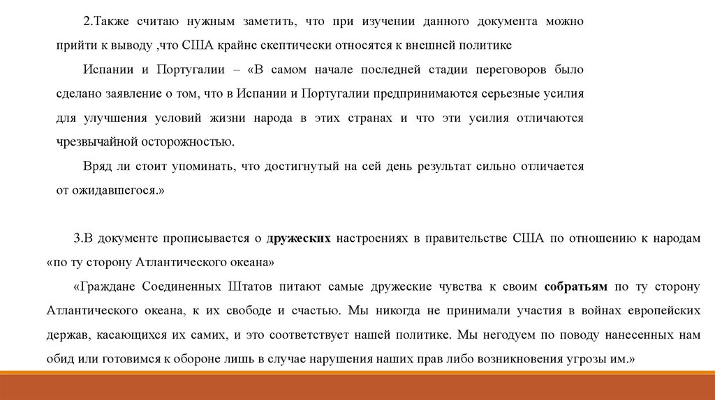2.Также считаю нужным заметить, что при изучении данного документа можноприйти к выводу ,что США крайне скептически относятся к внешней политике