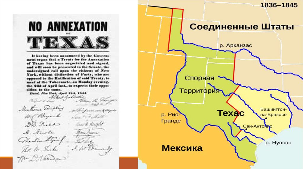 • 1840-е связаны с захватнической Мексиканской войной (1846—1848),