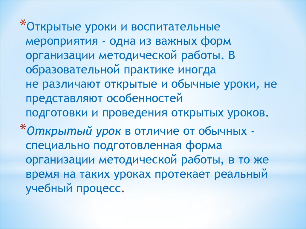 * Открытые уроки и их содержание не должны противоречить учебным