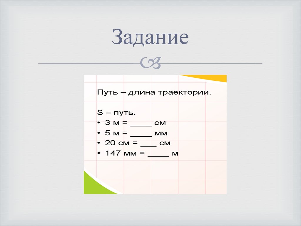 ЗаданиеПуть – длина траектории.